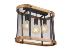 MeineWunschleuchte LED Deckenleuchte Mit Holz & Gitter Schwarz, 3-flammig 45cm Breit