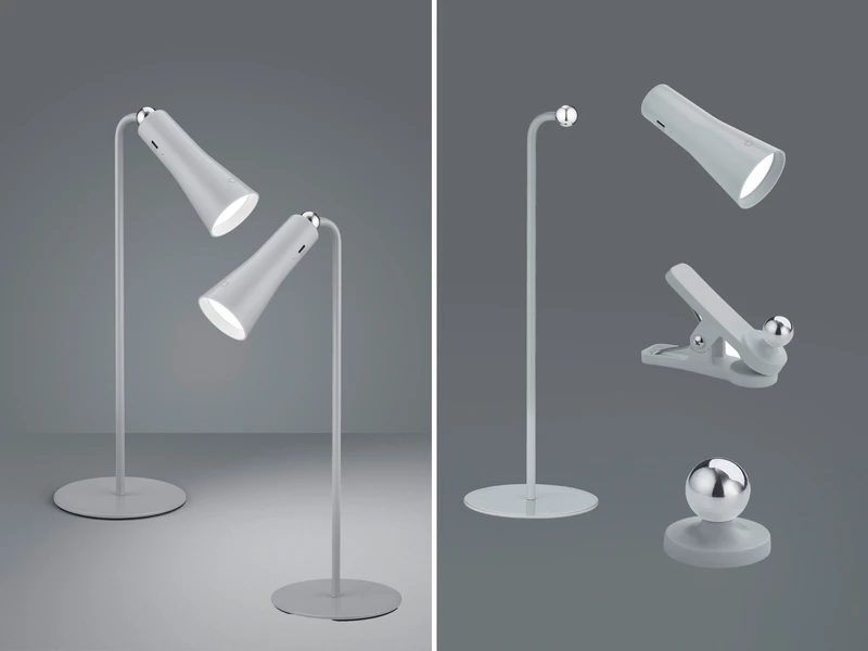 Die Tischleuchten haben eine Höhe von 36cm und sind über die Touchfunktion in 3 Stufen dimmbar. Perfekt für den Einsatz auf dem Schreibtisch, dem Nachttisch oder als mobile Leselampen. Mit der mitgelieferten Klemmvorrichtung können Sie die Leuchten auch ganz praktisch als Klemmleuchten nutzen. Dazu ist der magnetische Leuchtenkopf einfach abnehmbar und lässt sich an der Klemmvorrichtung ansetzten.