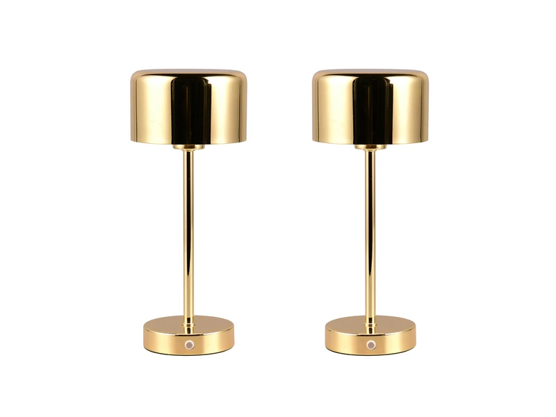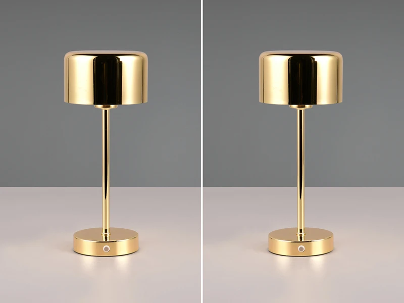Die 30cm hohen Leuchten sind komplett aus Metall in der Farbgebung Messing poliert gefertigt und können über eine Sensortaste am Leuchtenfuß An-und Aus sowie in 3 Stufen gedimmt werden.