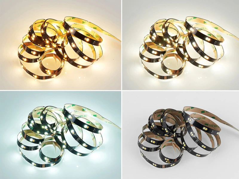 Die auf dem drei Meter langen Streifen verbauten LED lassen sich mit Hilfe der beigelieferten Fernbedienung in der Helligkeit stufenlos dimmen und in drei Farbtemperaturen (von warmweiß bis tageslichtweiß) schalten. Zusätzlich verfügt der Strip über eine Memory Funktion, womit die zuletzt gewählte Licht-Einstellung gespeichert wird, und beim erneuten Einschalten der Leuchte wieder erstrahlt.