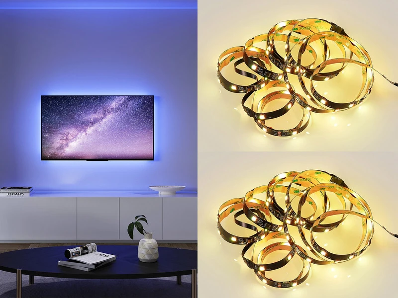 Die 300cm langen Lichtstreifen sind speziell für die Anbringung an PC oder TV Bildschirmen gefertigt, und verwandeln ihr Computerspiel oder ihren Fernsehabend in ein spannendes Erlebnis. Die Strips sind in schlichtem Schwarz gehalten, so dass sie sich unauffällig an ihrem Bildschirm anpassen. An der Rückseite befindet sich ein Klebestreifen, welcher eine schnelle und einfache Montage ermöglicht, zudem können die Lichtbänder an den vorhergesehenen Markierungen gekürzt werden um sich perfekt an der Größe Ihres Bildschirms Zuhause anzupassen.