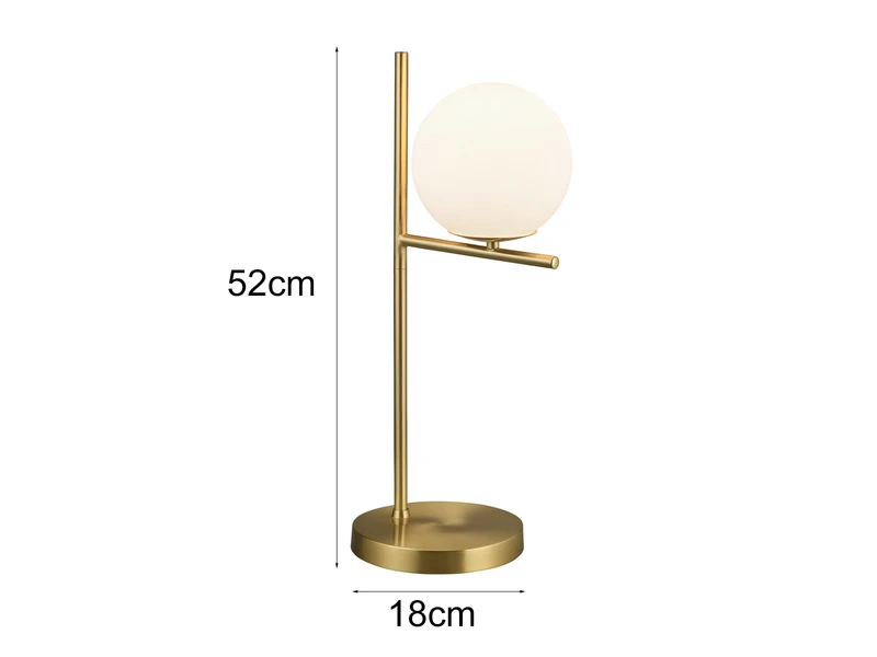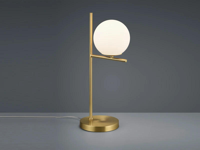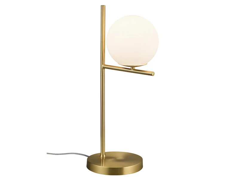 Diese Tischlampe mit einer Höhe von 52cm und einer Ausladung von 24,2cm überzeugt mit klarem Design. Der Korpus in Messing matt bietet dem Lampenschirm aus weißem Glas eine dezente Basis ohne viel Schnickschnack.