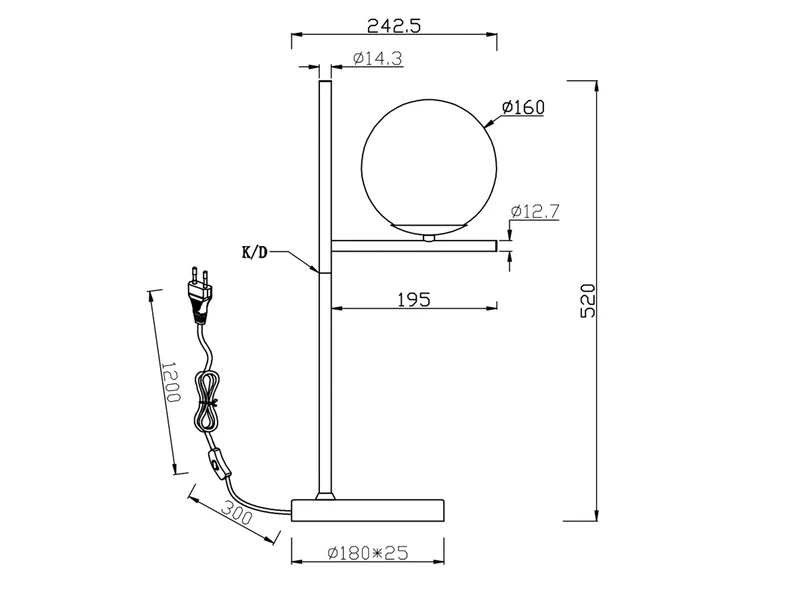 Die Kugellampe ist mit einer E14 Fassung ausgestattet und wird inklusive eines LED Leuchtmittels mit einer Leistung von 4,9 Watt und 470 Lumen in warmweiß geliefert. Dieses ist mit einer sogenannten Switch Dimmer Funktion ausgestattet und über den Schnurschalter der Leuchte in 3 verschiedenen Helligkeitsstufen (100% – 50% – 25%) sowie An/Aus schaltbar.