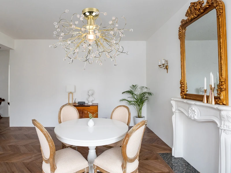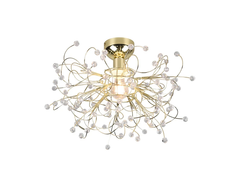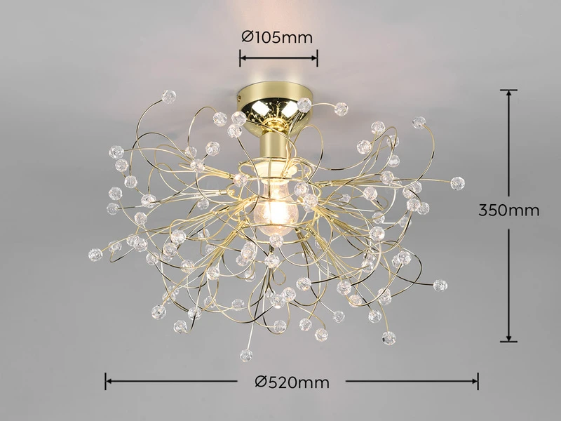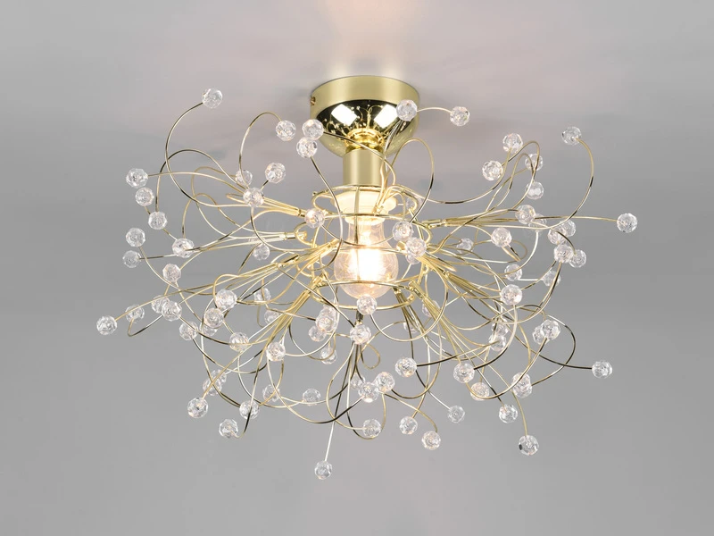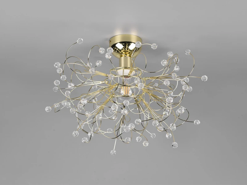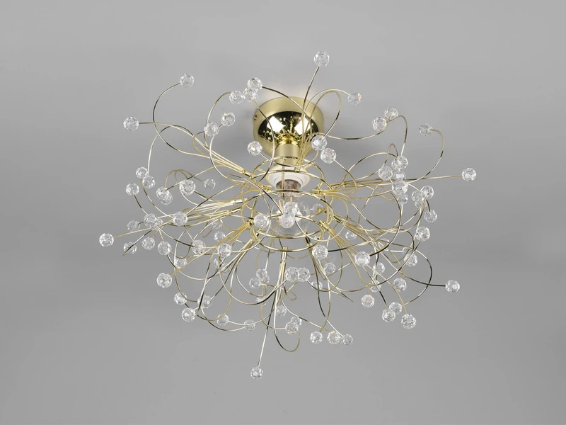 Durch das Metall in Messing poliert und die funkelnden Acryl-Applikationen erhält die Deckenbeleuchtung einen Hauch von Eleganz.