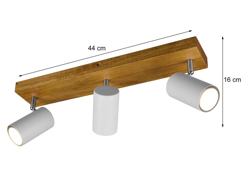 Der Deckenstrahler ist mit drei GU10 Fassungen ausgestattet und wird inklusive eines dimmbaren LED Leuchtmittel mit 5 Watt und 400 Lumen in warmweiß geliefert.