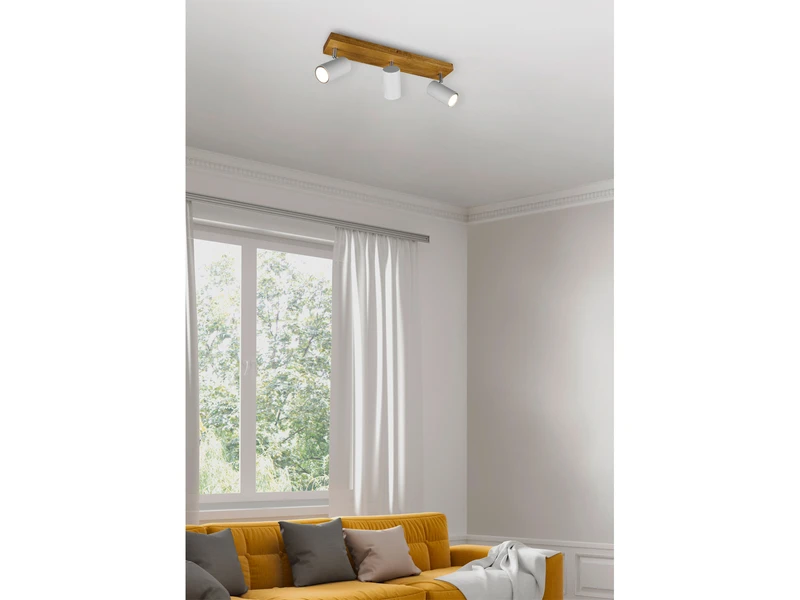 Ob in Esszimmer und Küche, in Flur und Diele oder im Wohnbereich: der Strahler ist vielseitig einsetzbar und lässt sich gut mit verschiedenen Einrichtungsstilen kombinieren. Die moderne Kombination aus Holz und Metall in Weiß matt sorgt für Gemütlichkeit und liegt absolut im Trend.