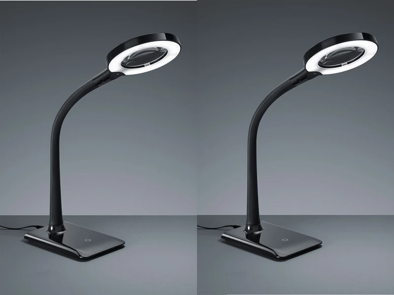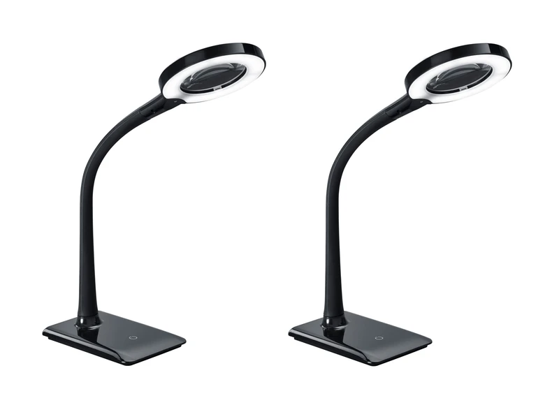 Der Korpus der Tischleuchten besteht aus schwarzem Kunststoff und ist dank des eingearbeiteten Flexrohrs flexibel biegsam. Auch der Reflektor der Tischlampen lässt sich individuell ausrichten und einstellen, so dass sich die Arbeitsleuchten Ihren persönlichen Lichtwünschen optimal anpassen. Per Berührung des Sensorknopfes am Leuchtenfuß ist die gewünschte Helligkeit in 3 Stufen regulierbar.