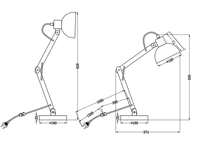 Durch ein Gelenk am Leuchtenarm und dem eingebauten Gelenk am Schirm können Sie die Tischlampe ganz nach Ihren Bedürfnissen ausrichten, was bei einer Ausladung von 37cm eine effektive Beleuchtung garantiert. Darüber hinaus lässt sich die Leuchte über einen Schnurschalter bequem bedienen.