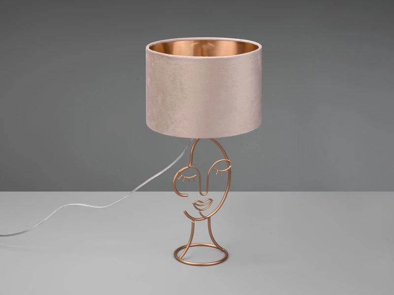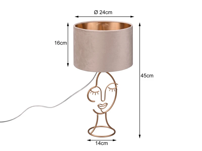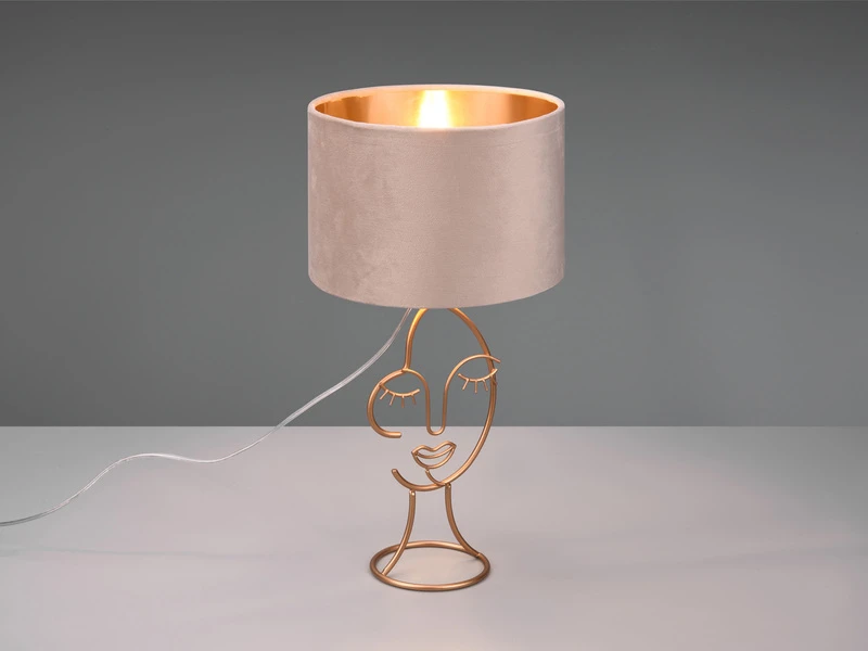 Der goldene Innenschirm bildet einen interessanten Farbkontrast zum Lampenfuß in Gold und Außenschirm in Beige.