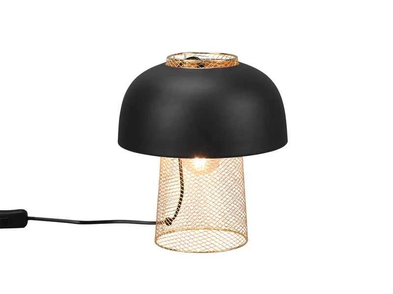 Der moderne Schirm, der von innen durch einen zweiten kleineren Schirm in Gitteroptik als Designelement ergänzt wird, kommt wunderbar zur Geltung und sorgt für besondere Lichteffekte. Der kleinere Schirm dient auch als Lampenfuß.