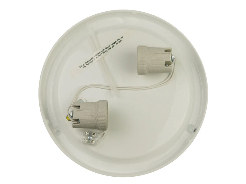 Die Flurlampe ist geeignet für 2 x E27-Leuchtmittel bis max. 60 Watt (nicht enthalten) und kann mit Allgebrauchslampen (AGL), Energiesparleuchten (ESL) oder LED-Lampen bestückt werden.