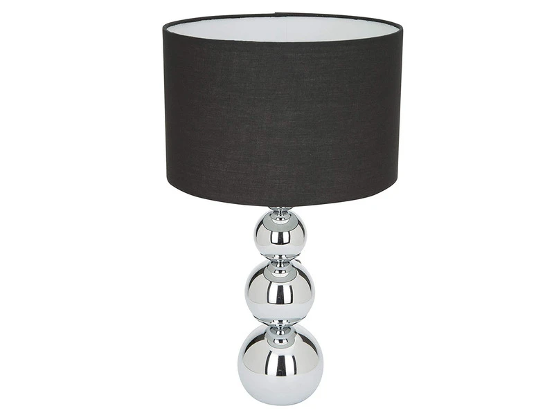 Der elegante, schwarze Textilschirm der Tischleuchte ist von innen Weiß und hat einen Durchmesser von 25 cm.