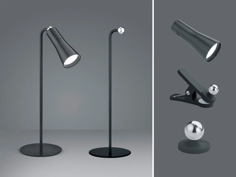 Die Tischleuchte hat eine Höhe von 36cm und ist über die Touchfunktion in 3 Stufen dimmbar. Perfekt für den Einsatz auf dem Schreibtisch, dem Nachttisch oder als mobile Leselampe. Mit der mitgelieferten Klemmvorrichtung können Sie die Leuchte auch ganz praktisch als Klemmleuchte nutzen. Dazu ist der magnetische Leuchtenkopf einfach abnehmbar und lässt sich an der Klemmvorrichtung ansetzten.