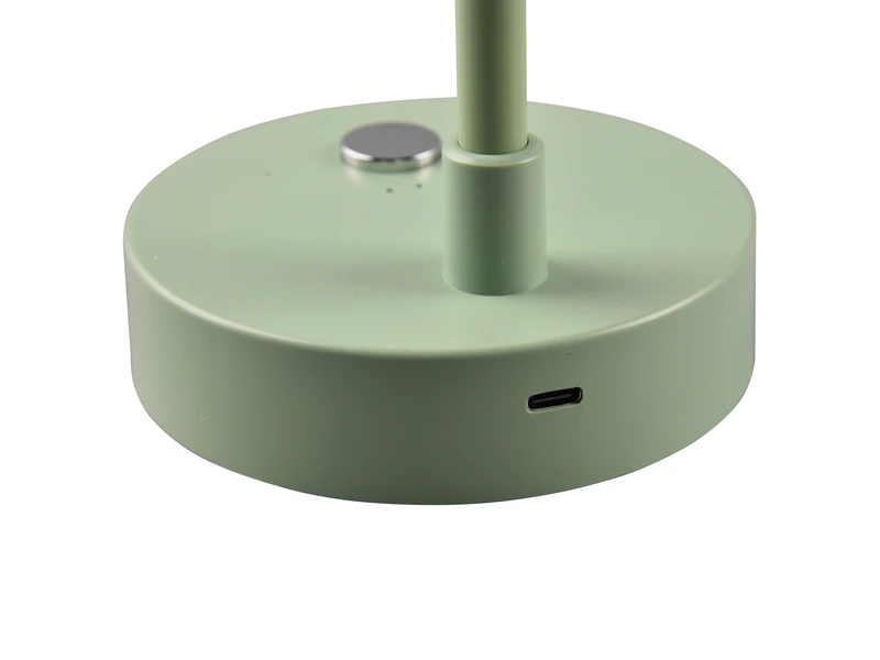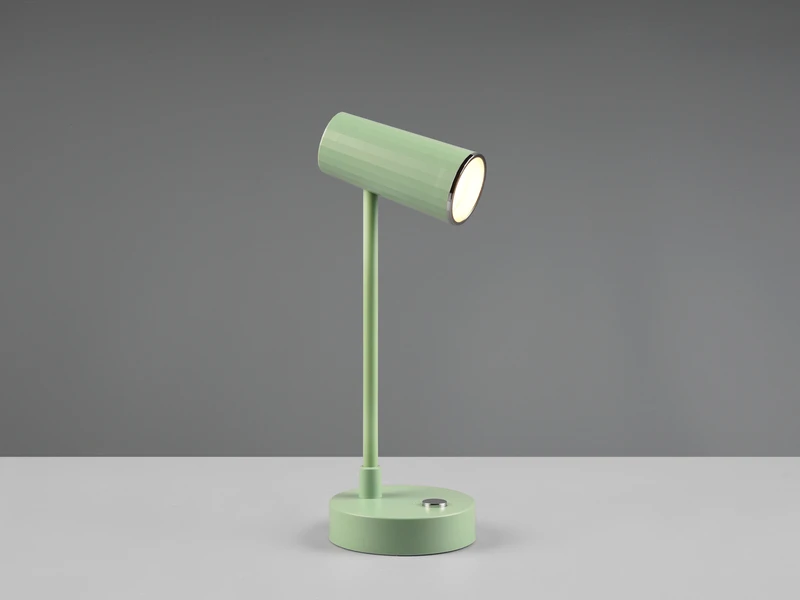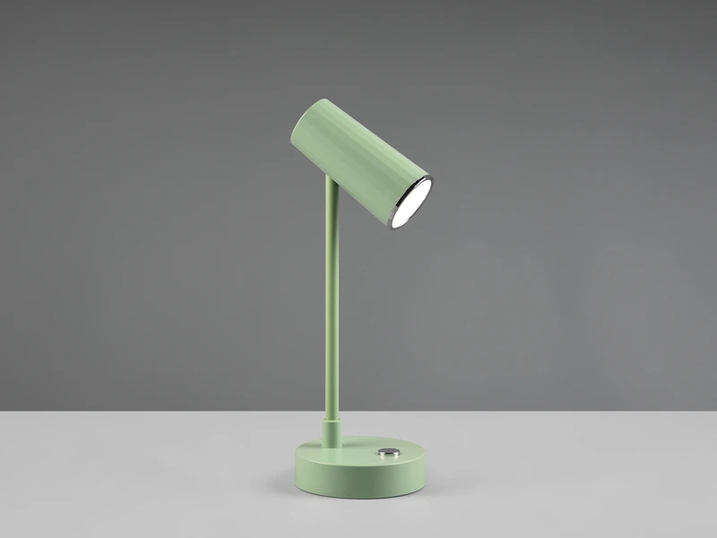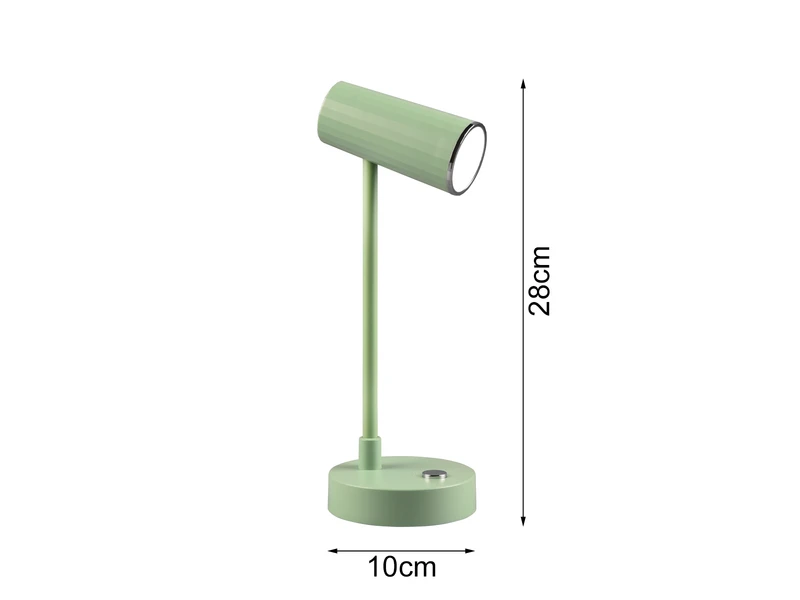 Die 28cm hohe Tischleuchte in Grün ist mit einem fest verbauten LED Modul bestückt, das mit einer Leistung von 2,5 Watt und 230 Lumen für eine angenehme Beleuchtung sorgt.