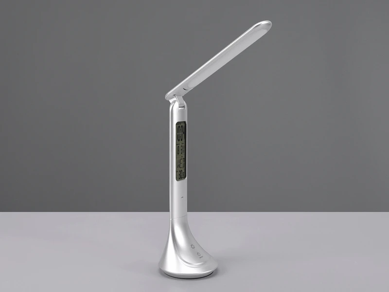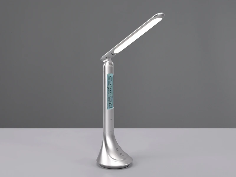 Dank des Akkus, der ganz einfach über einen USB-C-Anschluss geladen wird, kann die Leuchte ganz ohne Kabel an einem von Ihnen ausgewählten Platz in Szene gesetzt werden. Neben einer Weckfunktion ist die Tischleuchte mit einer integrierten Digitalanzeige ausgestattet, die Sie neben der Uhrzeit auch über das aktuelle Datum sowie die Temperatur informiert.
