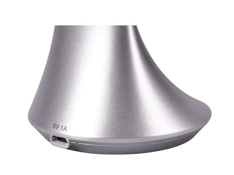 Des Weiteren reguliert der praktische 4-Stufen-Dimmer die Lichtintensität ganz nach Ihren Bedürfnissen. In silbernem Design rundet die Tischlampe das moderne Erscheinungsbild optimal ab und fügt sich problemlos in Ihren Einrichtungsstil ein.