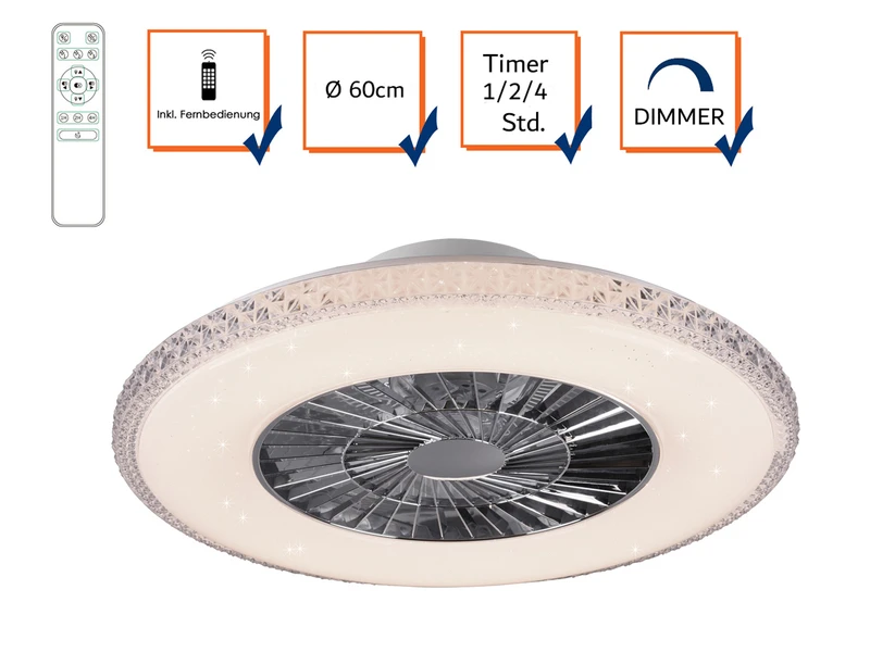 Die Deckenleuchte ist mit einem Ventilator ausgestattet und schafft an heißen Tagen eine angenehme Abkühlung in Ihren Räumen.
