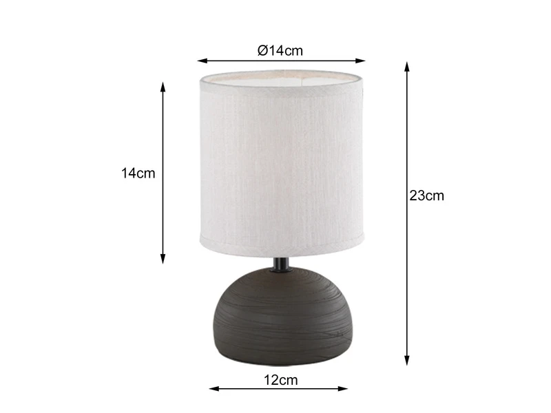 Die Tischbeleuchtung ist 23cm hoch und der Schirm hat einen Durchmesser von 14cm. Sie ist mit einem Schnurschalter ausgestattet, mit welchem sich diese Tischleuchte einfach bedienen lässt. Die Leuchte eignet sich für Leuchtmittel mit E14-Fassung, welche nicht im Lieferumfang enthalten sind.