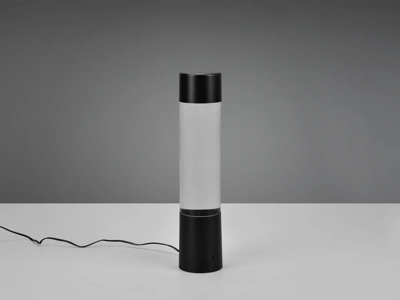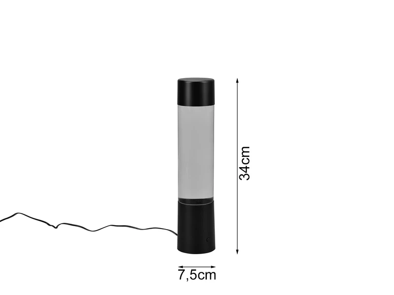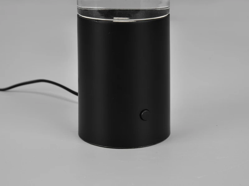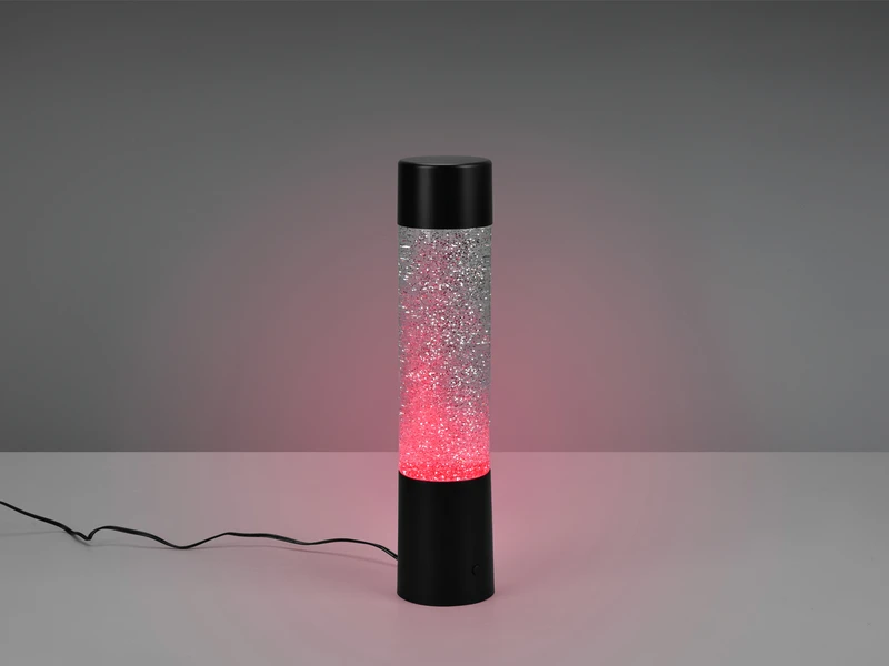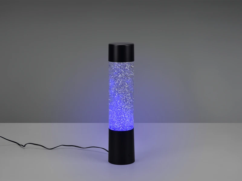 Sobald die Säule eingeschaltet ist, bewegen sich die vielen Glitzerpartikel in der klaren Flüssigkeit, wodurch ein interessantes Lichtspiel entsteht und zum wahren Hingucker in Ihrem Zuhause wird. Im ausgeschalteten Zustand nimmt die Wassersäule eine schlichte Optik an und lässt sich dank schwarz mattem Leuchtenfuß und der klaren Säule vielseitig kombinieren.