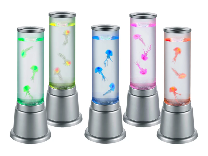 Sobald die Säule eingeschaltet ist, beginnen die kleinen Jelly-Fische sich in der klaren Flüssigkeit zu bewegen. Über den verbauten RGB Farbwechsler kann die Säule unterschiedliche Farbausprägungen annehmen und zaubert ein Lichtspiel in Ihre Wohnräume.