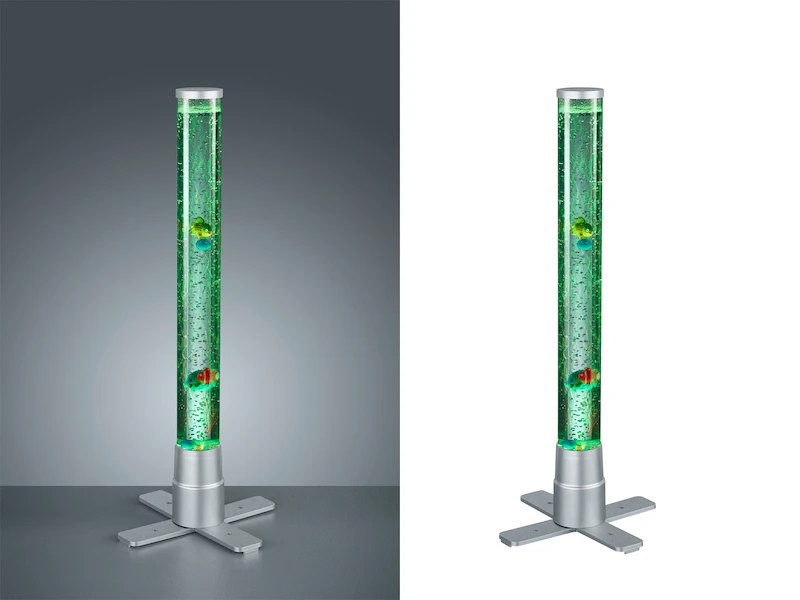 Die stimmungsvolle Luftblasen Optik und die zauberhaften Wasserspiele der enthaltenen Deko Fische verwandeln diese Wasserlampe schon im Hellen zu einem echten Hingucker.