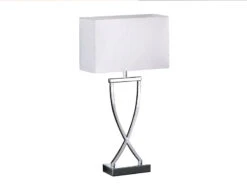 MeineWunschleuchte Große LED Tischleuchte Chrom Mit Stoffschirm Weiß Eckig – Höhe 51cm