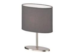 Fischer & Honsel Große Tischlampe ANNI Silber Mit Stoffschirm Grau Eckig – Höhe 51cm