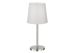 MeineWunschleuchte Klassische LED Tischleuchte Silber Mit Stoffschirm Weiß, Höhe 32cm