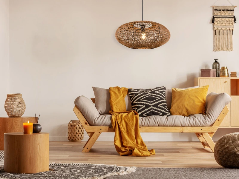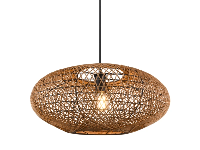 Die Korblampe ist mit einem Durchmesser von 52 cm ein beeindruckender Eyecatcher, der den Raum in ein angenehmes Licht taucht.