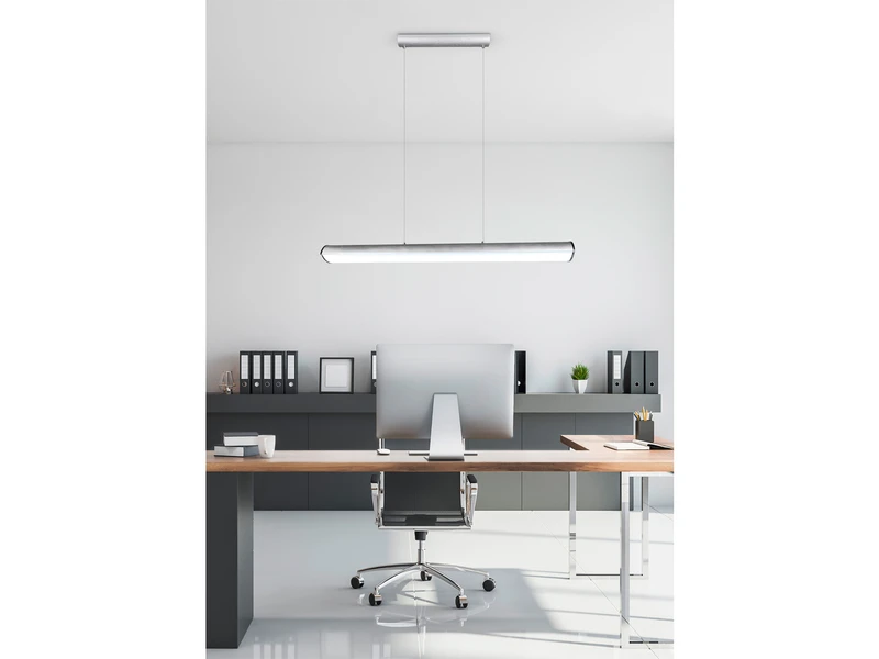 Für die Leuchte finden sich eine Reihe unterschiedlicher Anwendungsbereiche, vor allem aber im Arbeitszimmer oder im Essbereich, über einem länglichen Esstisch ausgerichtet kommt sie wunderbar zur Geltung.