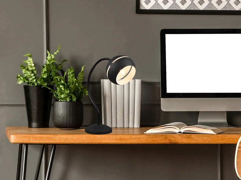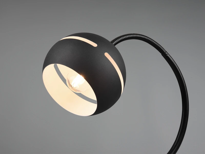 Das geschmackvolle Äußere in Schwarz matt sorgt mit dem durchbrochenen kugelförmigen Lampenschirm für einen zeitlosen und stilvollen Look.