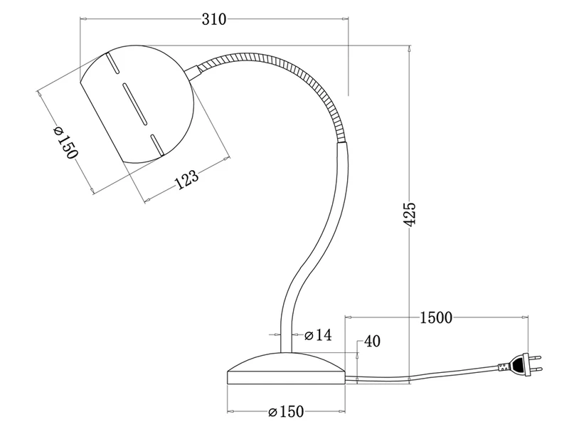 Die Tischbeleuchtung ist mit einer E14 Fassung ausgestattet und für Leuchtmittel mit max. 20 Watt geeignet. Dieses ist nicht im Lieferumfang enthalten.