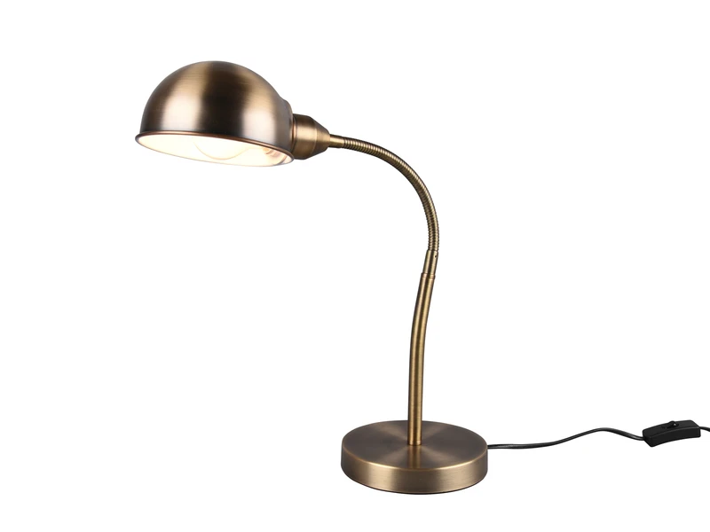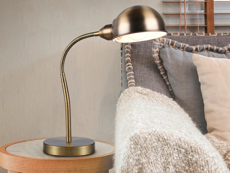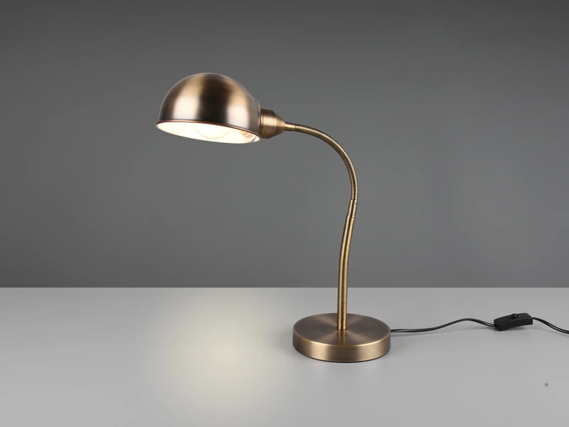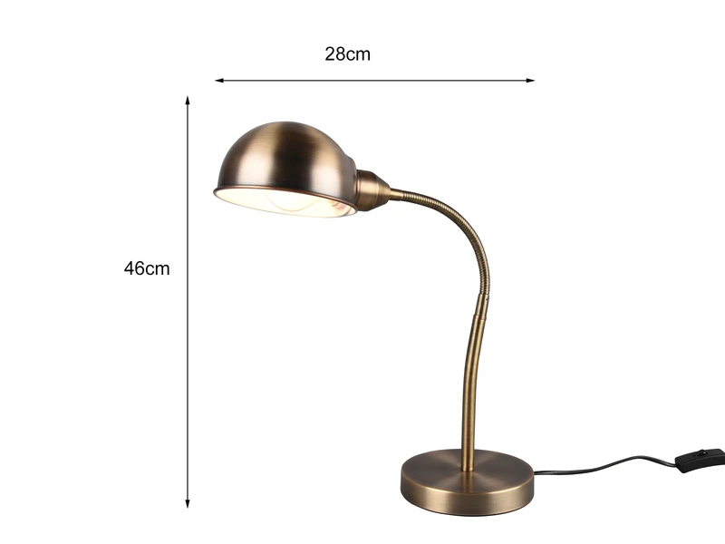 Mit dem verstellbaren Flexarm können Sie Platz sparen und die Leuchte für kleine sowie große Tische verwenden. Die edle Farbgestaltung in Altmessing setzt gekonnt Akzente und lässt sich vielseitig mit vorhandene Einrichtungsstilen kombinieren.