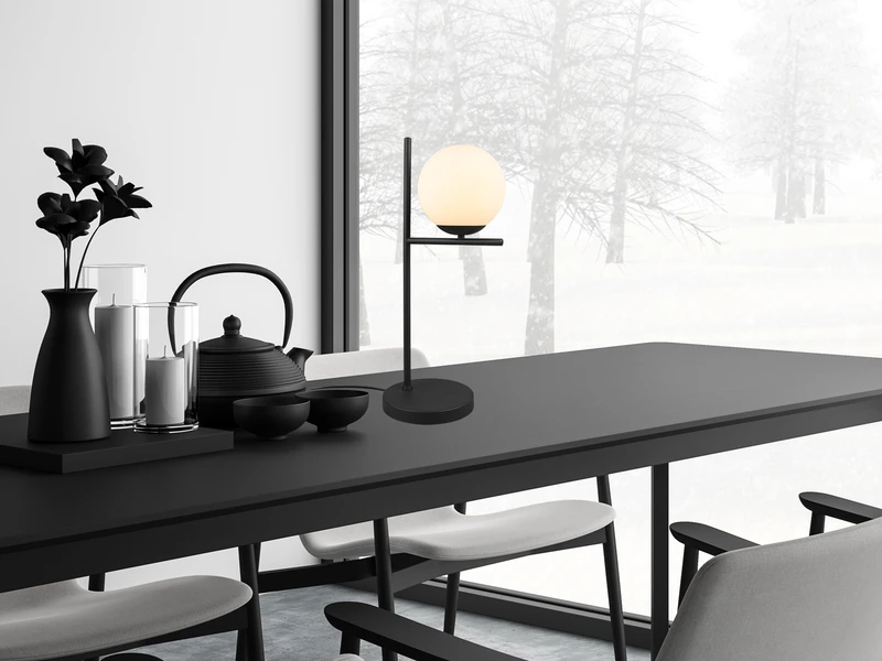 Der Korpus bietet dem Lampenschirm aus weißem Glas eine klare, dezente Basis ohne viel Schnickschnack und die farblich harmonisch aufeinander abgestimmten Oberflächen machen die Tischlampe zum Blickfang in jedem Raum.