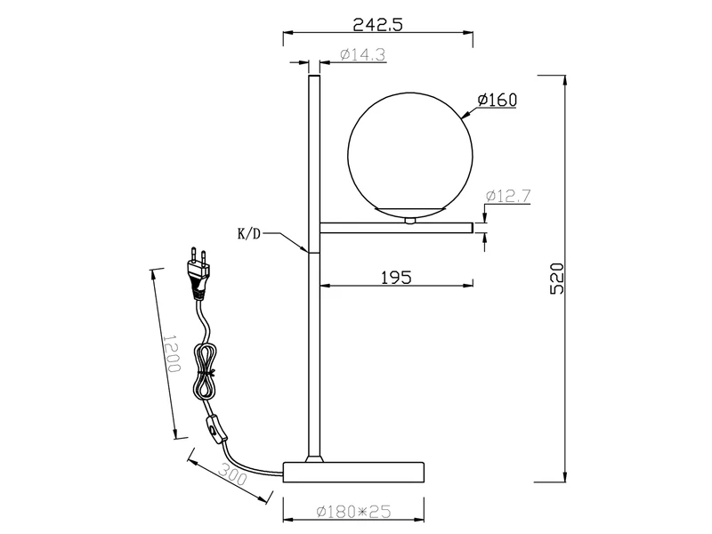 Die Tischleuchte ist mit einer E14 Fassung ausgestattet und für Leuchtmittel max. 28 Watt geeignet (nicht enthalten). Über den Schnurschalter lässt sich die Leuchte bequem Ein und Aus schalten.