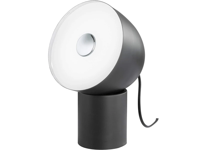 Die Tischlampe lässt sich, mit einer Höhe von nur 25cm und einer Breite von 15cm, problemlos in viele Wohnkonzepte integrieren. Die in Schwarz gehaltene Lampe wird von einer satinierten Acrylgas-Abdeckung ergänzt, welche für eine sanfte blendfreie Beleuchtung sorgt.